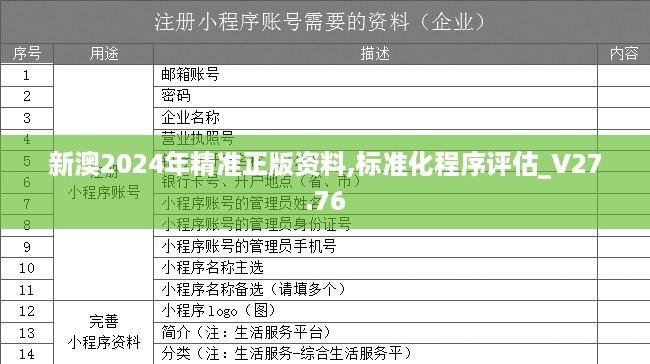 获取新澳2024年精准正版资料后,接下来进行标准化程序评估,以下是具体步骤: