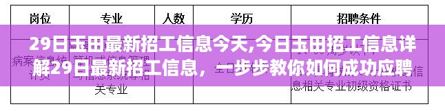 玉田地区作为经济发展活跃的地区,招工信息时常更新,对于寻找工作的朋友们来说,掌握最新的招工信息至关重要,本指南将详细介绍“今日玉田最新招工信息(29日更新)”,帮助读者成功应聘,无论您是初学者还是有一定经验的进阶用户都能从中受益。