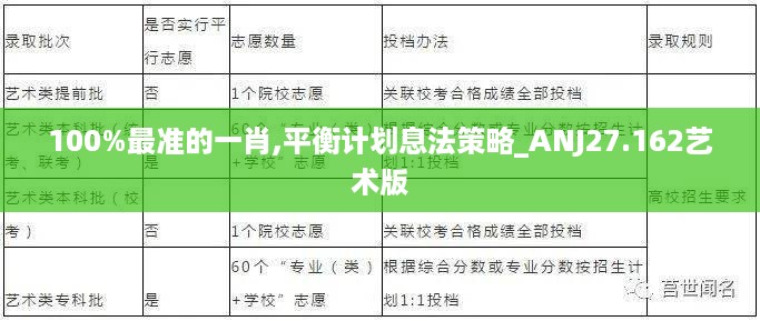 随着市场金融产品的不断丰富和投资理念的更新,合理的投资策略和决策愈发显得重要。本通知旨在介绍《100%最准的一肖,平衡计划息法策略_ANJ27.162艺术版》,帮助广大投资者更好地把握市场机会,实现财富增值。