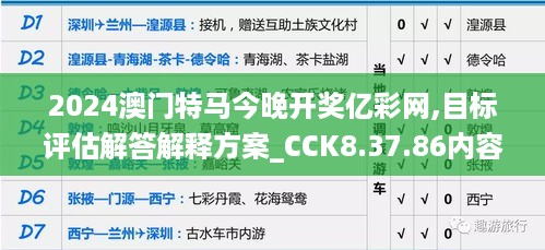 随着科技的不断发展和社会的日益进步,澳门的博彩业逐渐向数字化、智能化方向迈进。为进一步提升澳门博彩业的透明度和公信力,澳门特别行政区决定进行2024年澳门特马今晚开奖亿彩网的目标评估,并提出相应的解答与解释方案,以满足广大彩民的需求,确保博彩活动的公平、公正和合法性。