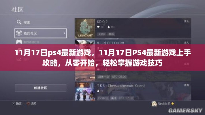 随着科技的不断发展,电子游戏已成为许多人休闲娱乐的重要方式,特别是PS4游戏,以其高质量的游戏体验、丰富的游戏内容赢得了众多玩家的喜爱,本文将针对11月17日最新发布的PS4游戏,为初学者和进阶用户分别提供游戏上手攻略,帮助大家轻松掌握游戏技巧,完成各种任务。