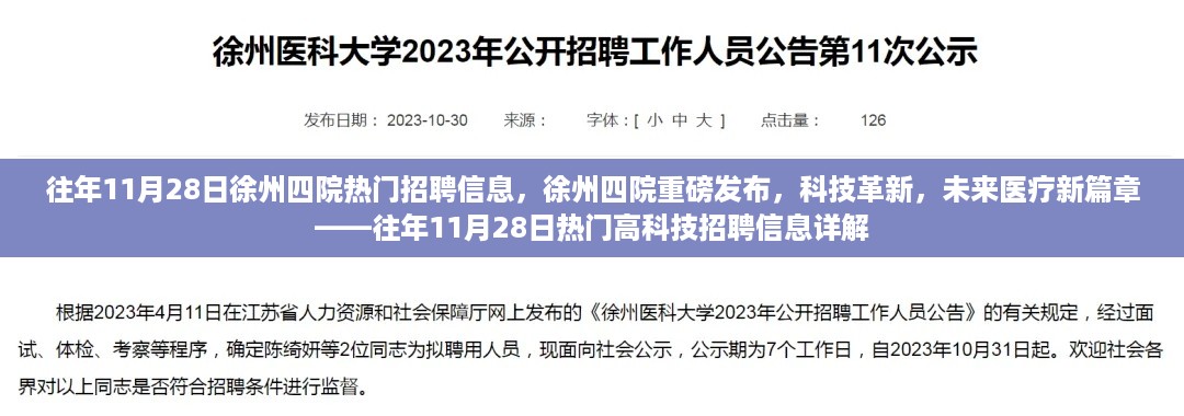 在数字化浪潮席卷全球的今天,徐州四院凭借前沿的医疗科技引领行业变革,在去年的11月28日,徐州四院发布了一系列热门高科技招聘信息,吸引了众多科技爱好者的目光,我们将聚焦于这些岗位带来的最新科技成果,为您展现功能亮点和使用体验,感受科技如何深度融入医疗领域,为我们的生活带来翻天覆地的改变。