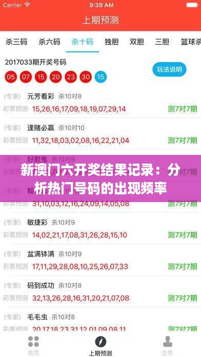 自澳门彩票发展以来,新澳门六作为极具代表性的彩票一直占据着无以伦比的地位,深受广大彩票爱好者的喜爱。研究新澳门六开奖结果记录中热门号码的出现频率,对于了解新澳门六彩票的发展趋势、预测未来开奖号码具有十分重要的作用。为了更全面地展示新澳门六热门号码出现频率,本文将从以下几个方面进行深入分析: