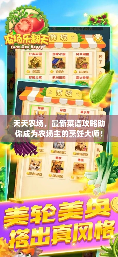天天农场不断更新菜谱,为玩家带来全新的烹饪体验,玩家可以通过游戏内公告或社交媒体了解最新菜谱信息,掌握新菜谱的制作方法,可以让你的农场更具特色,吸引更多玩家。
