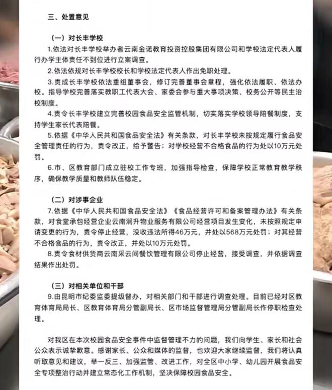 针对此次事件,昆明市采取了严肃的处理措施,涉事学校校长被免职,以追究其责任,涉事食堂被查封,并责令立即整改,对食堂负责人和相关责任人进行调查和处理,相关部门还加强了对学校食品安全管理工作的监督力度,以确保类似事件不再发生。