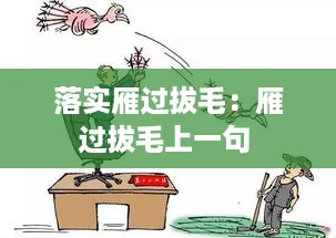 “雁过拔毛”,这个成语源自古代,意指雁群飞行时,一只雁飞过,会带走一片羽毛。比喻在别人不经意间,偷偷取走利益。在现代社会,这个成语被赋予了新的含义,即指在公共事务中,个别人员利用职务之便,非法侵占公共财物或权益。落实“雁过拔毛”,就是要坚决打击这种违法行为,维护社会公平正义。