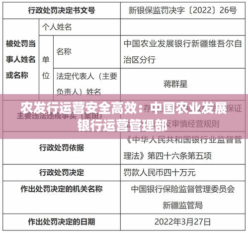 农发行运营安全高效:中国农业发展银行运营管理部