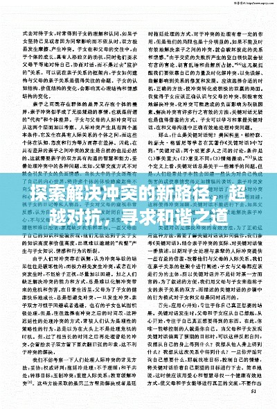 探索解决冲突的新路径,超越对抗,寻求和谐之道