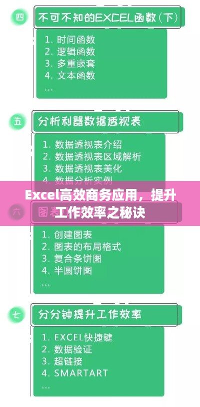Excel高效商务应用对于提高商务人士的工作效率、优化数据管理等方面具有重要意义,掌握Excel的常用技巧和操作方法,结合实际工作需求进行实践应用,不断提升自己的Excel应用能力,将有助于职场人士在竞争激烈的市场环境中脱颖而出。