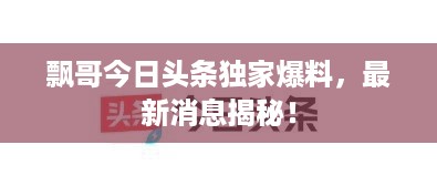 转载请注明来自无忧安证,本文标题:《飘哥今日头条独家爆料,最新消息揭秘!》