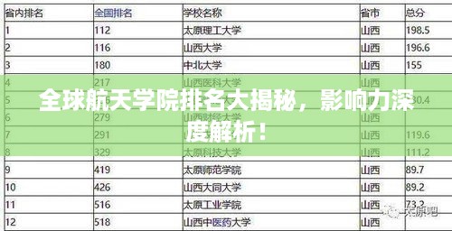 随着科技的飞速发展,航天领域已成为全球竞争的重要战场,航天学院的实力与研究成果,直接关系到国家在全球航天领域的地位,本文将为您揭示全球航天学院的排名及其影响力。