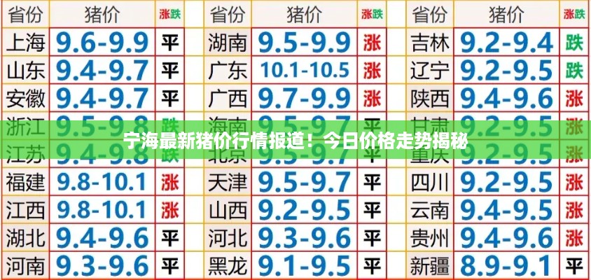 随着人们对食品消费需求的不断增长,畜牧业的发展也日益繁荣,作为重要的农产品之一,猪肉的价格变化备受关注,本文将围绕“今日宁海猪价最新消息”这一主题展开,探讨当地猪肉市场的现状和未来趋势。