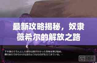 在游戏世界中,每个角色都有其独特的故事和挑战,我们将聚焦于一个备受关注的游戏角色——奴隶薇希尔,为大家带来关于她的最新版本攻略,希望这篇攻略能帮助玩家更好地理解和玩转这个角色。