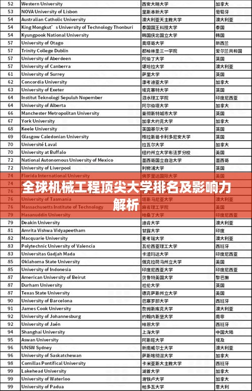 随着科技的飞速发展,机械工程作为推动全球工业进步的重要驱动力,其影响力日益扩大,各大高校的机械工程专业也因此备受关注,本文将探讨世界大学机械工程排名及其相关影响力。