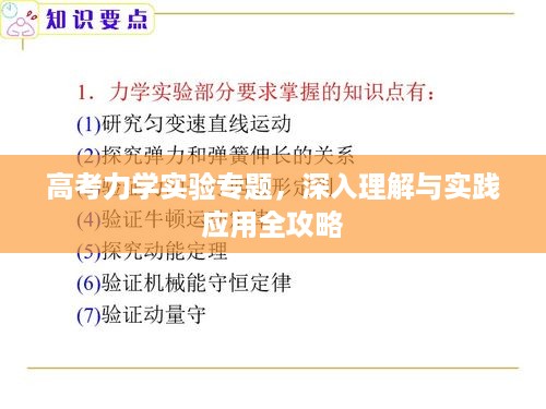 力学是物理学的重要组成部分,也是高考物理的重要内容,实验是力学学习的重要途径,通过实验操作,学生能够深入理解力学原理,提高解决实际问题的能力,本文将围绕“高考力学实验专题”展开讨论,旨在帮助学生更好地理解和掌握力学实验相关知识。