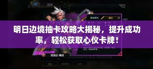 在明日边境中,玩家可以通过消耗特定的道具或货币进行抽卡,获取游戏中的稀有角色和道具,不同的抽卡方式有不同的成功率,掌握一定的技巧和方法可以有效提高抽卡成功率。