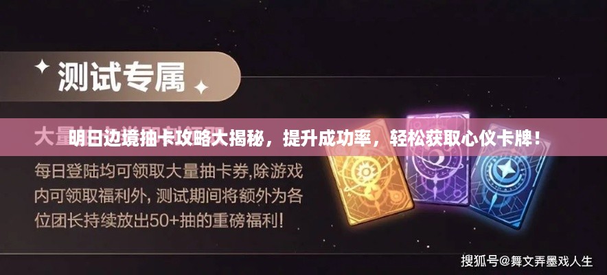 随着科技的不断发展,各种游戏也应运而生,其中抽卡游戏因其独特的玩法和刺激感备受玩家喜爱,在明日边境这款游戏中,抽卡是获取稀有道具和角色的重要途径,本文将为大家带来最新的明日边境抽卡攻略,帮助大家提高抽卡成功率。