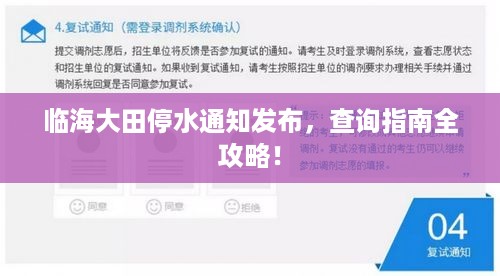 临海大田停水通知发布,查询指南全攻略!